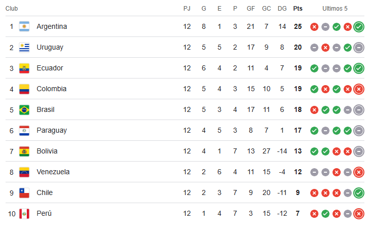Tabla de posiciones para la Clasificación eliminatorias Mundial 2026