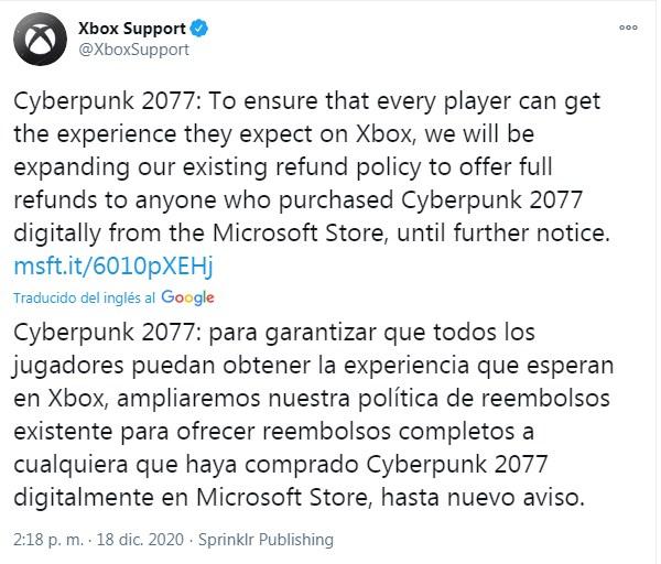 Microsoft también anunció que aquellos que tengan consolas Xbox pueden solicitar que se les reembolse la compra del videojuego en el siguiente enlace.