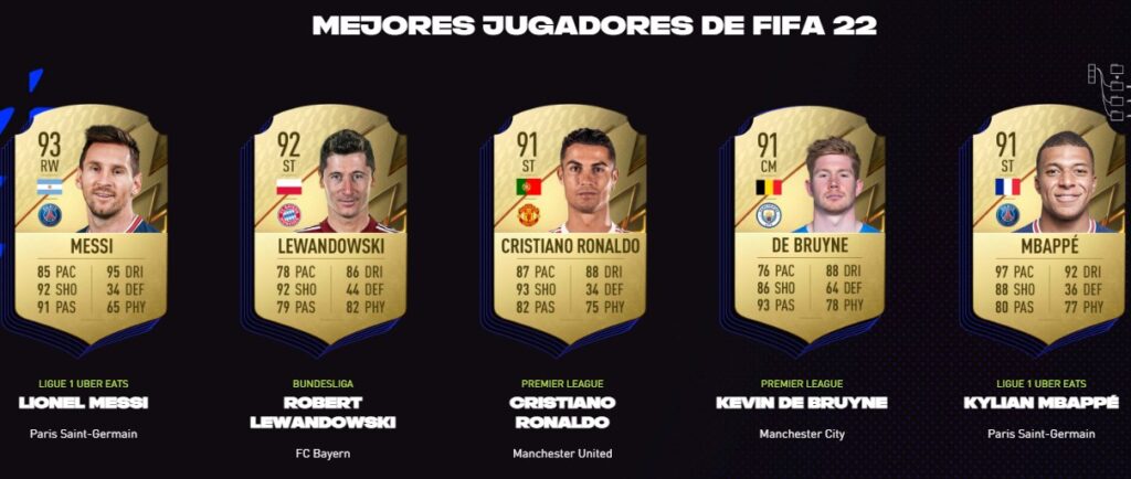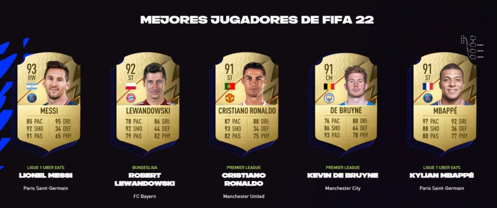 La empresa EA Sports dio a conocer las valoraciones medias oficiales de los mejores jugadores de FIFA 22.