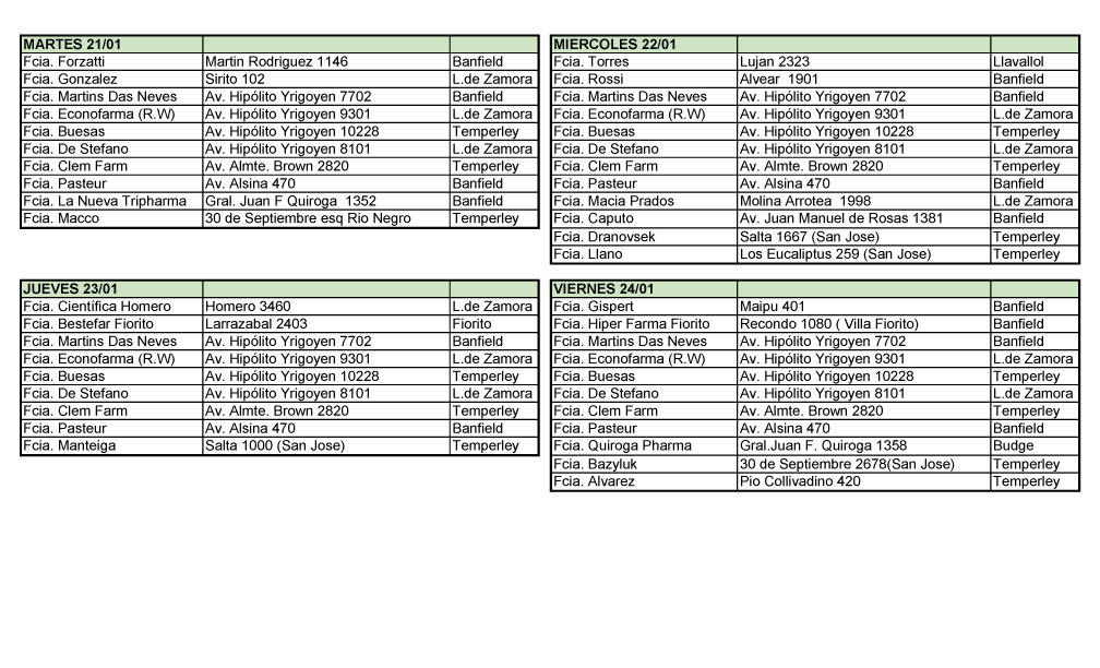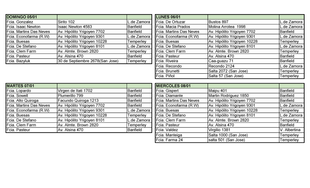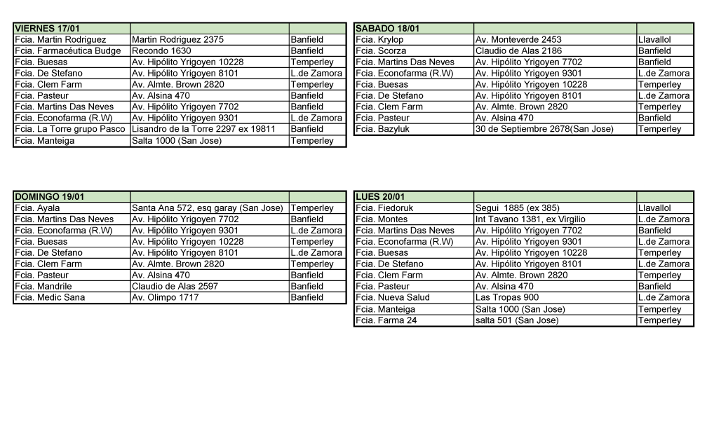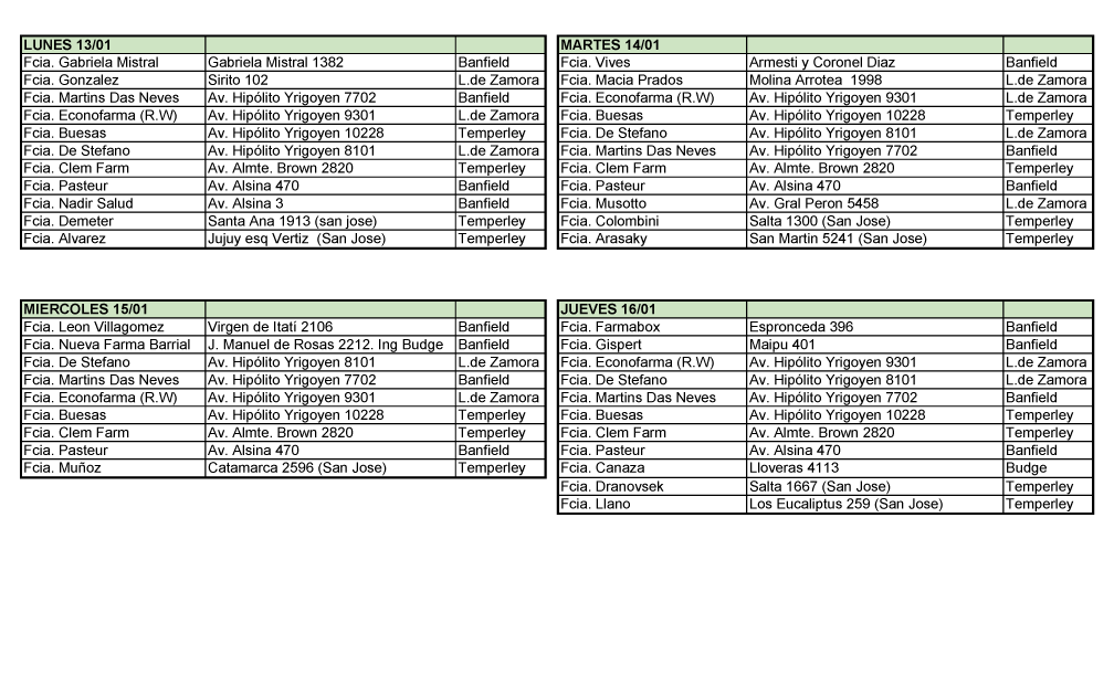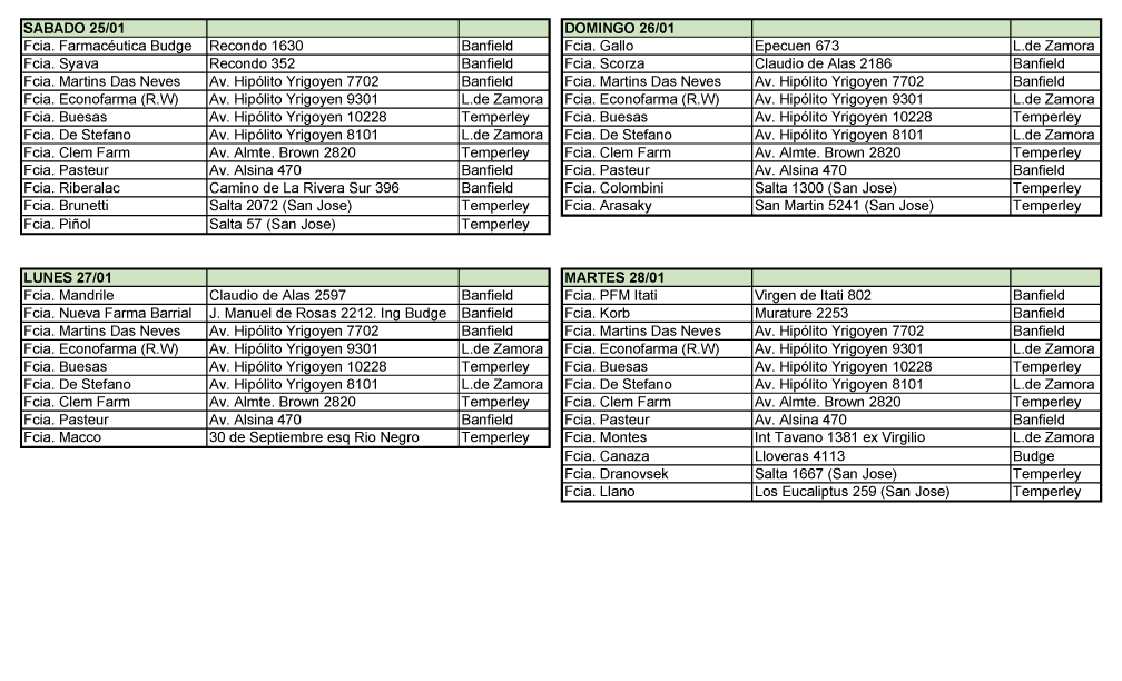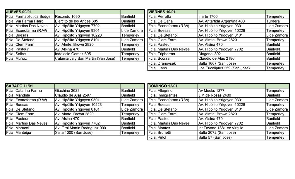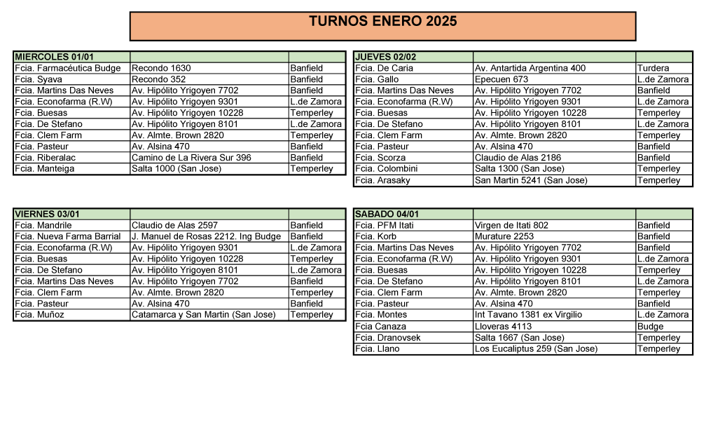 Farmacias de turno en Lomas de Zamora, lista completa por día de las que están abiertas los distintos barrios, como: Banfield este y oeste, Temperley, Fiorito, y Budge durante el MES DE ENERO DE 2025.