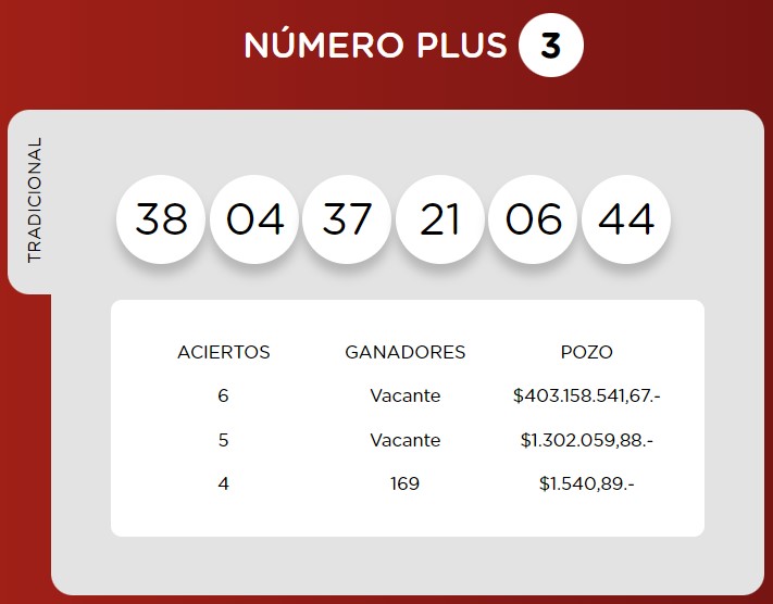 El Jackpot fue reemplazado por el Número Plus, con el cual Loto Plus regala un (1) número del 0 al 9, que si acertás, multiplicas el premio de tu apuesta de las categorias de 6 aciertos si resultara ganadora.Valor de al apuesta $200.-
