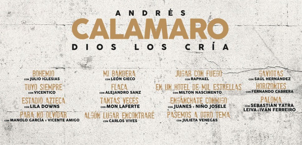 Acompañan a Calamaro: Julio Iglesias, Milton Nascimento, Mon Laferte, Lila Downs, León Gieco, Juanes y Niño Josele, Vicentico, Sebastián Yatra, Raphael, Julieta Venegas, Leiva e Iván Ferreriro, Manolo García y Vicente Amigo, Milton Nascimento, Saúl Hernández, Fernando Cabrera y Carlos Vives.