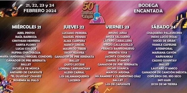 En Salta, Cafayate y su gente se visten de fiesta, del 21 al 24 de febrero, se realiza la celebración de la tradicional Serenata a Cafayate.