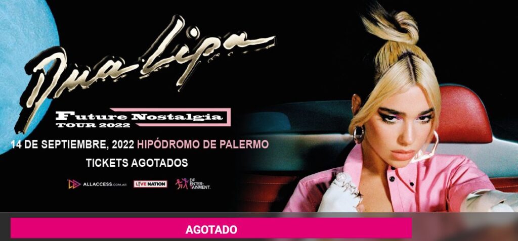 Desde All Access, plataforma donde se pusieron a a venta las entradas para el recital de Dua Lipa en Argentina, informaron que «los tickets se agotaron en una hora». Hasta ahora no confirmaron la realización de una nueva fecha.