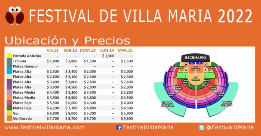 La cartelera de artistas completa que tendrá el Festival de Villa María durante los cinco días es la siguiente: