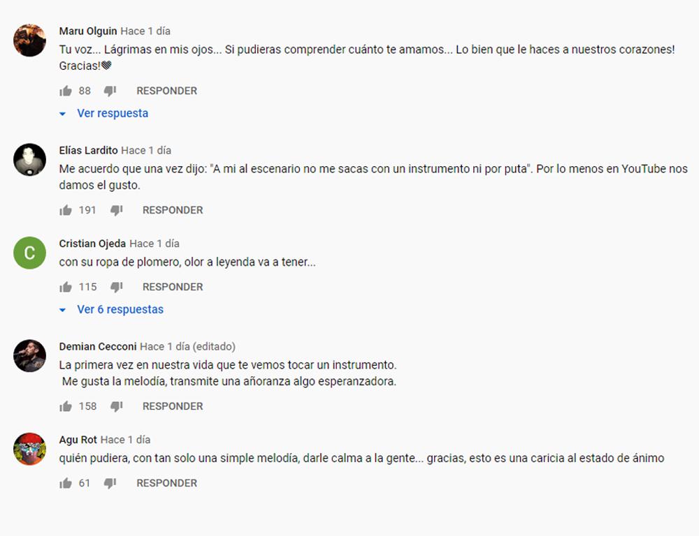 Los fanáticos del Indio, agradecieron y llenaron de comentarios la publicación en YouTube.