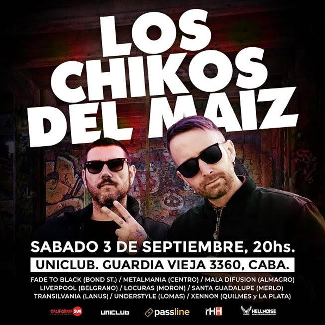 Los Chikos del Maíz el grupo más representativo del Hip – Hop español se presentará por primera vez en Argentina en el marco de su gira “Venceremos Tour 2022”, el Sábado 3 de Septiembre a las 20.00 horas en “Uniclub”, Guardia Vieja 3360, C.A.B.A.