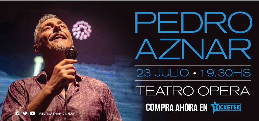 Pedro Aznar ofrecerá el próximo 23 de julio, día de su cumpleaños 62, su primer recital presencial del año en el porteño teatro Ópera, que además contará con una transmisión vía streaming a través de la plataforma Ticketek.