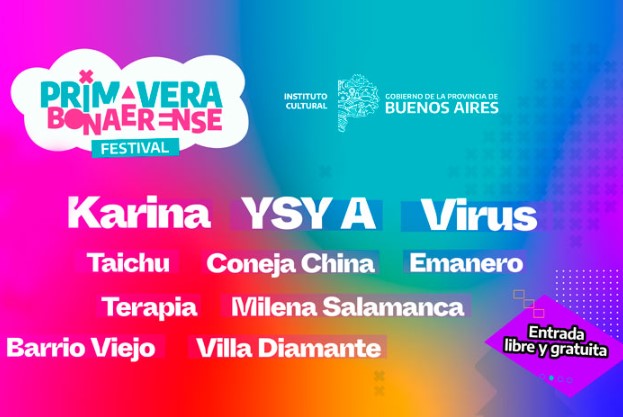 El Gobierno de la Provincia de Buenos Aires -a través del Instituto Cultural- realizará el Festival Primavera Bonaerense para celebrar el inicio de la nueva estación y el Día de las y los Estudiantes con las presentaciones artísticas de YSY A, Karina, Virus, Taichu y La Coneja China, entre otras . El festejo tendrá lugar este sábado 24 de septiembre en el Estadio Unico Diego Armando Maradona de la ciudad de La Plata desde las 14:00 hasta las 22:00, con ingreso libre y gratuito.