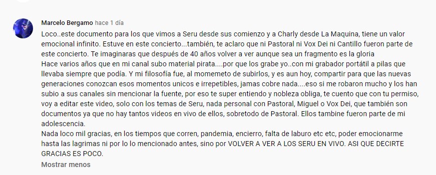 A poco más de 40 años del histórico show que Serú Girán ofreció en La Rural, famoso por haber reunido en plena dictadura militar a más de 60.000 espectadores, se publicaron por primera vez en YouTube imágenes perdidas de ese concierto y de otro realizado en el Estadio Obras Sanitarias.