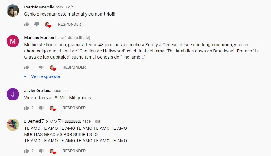 El material de Serú Girán en La Rural en vivo logró un a rápida repercusión entre el los fans del rock nacional que agradecieron la publicación del concierto que fue preservado para la posteridad por Gustavo García.