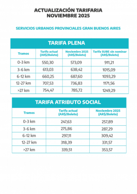 Según las autoridades la decisión se basa en «el Índice de Precios al Consumidor (IPC) Nivel General de la Región Gran Buenos Aires, relevado por el INSTITUTO NACIONAL DE ESTADÍSTICAS Y CENSO (INDEC), correspondiente al periodo mensual de septiembre del 2025, de conformidad con el mecanismo previsto en los artículos 4° y 5° de la Resolución N° 81/25, y que entrarán en vigencia a partir de las 00 hs. del día 1 de noviembre del corriente año».