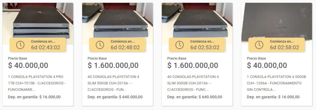 El precio base de una consola PS4 es de $40.000 mientras que un lote de 40 playstation es de 1 millón 600 mil pesos.