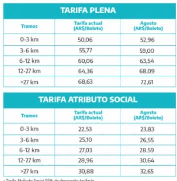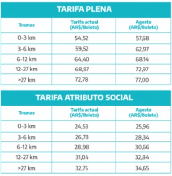 El Ministerio de Transporte de la Provincia de Buenos Aires pone en conocimiento público los cuadros tarifarios actualizados que comenzarán a regir a partir del 1 de agosto.