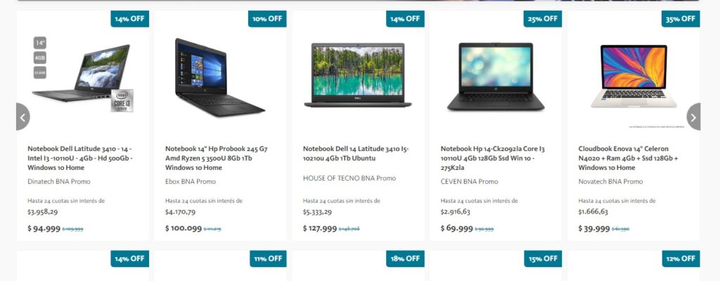 Los precios de las notebooks van desde los $ 49.000 a los $200.000 aproximadamente.