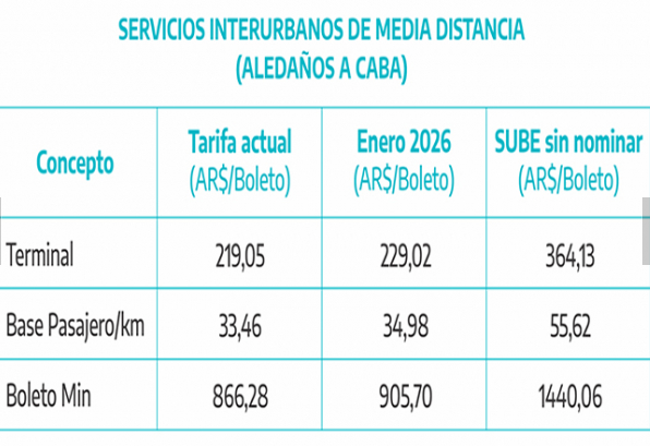 Los nuevos precios de boletos del transporte se establecen de 2acuerdo al Índice de Precios al Consumidor (IPC) Nivel General de la Región Gran Buenos Aires, relevado por el INSTITUTO NACIONAL DE ESTADÍSTICAS Y CENSO (INDEC)correspondiente al periodo mensual de noviembre del año 2025, de conformidad con el mecanismo previsto en los artículos 4° y 5° de la Resolución N° 81/25, y que entrarán en vigencia a partir de las 00 hs. del día 2 de enero del año 2026222.