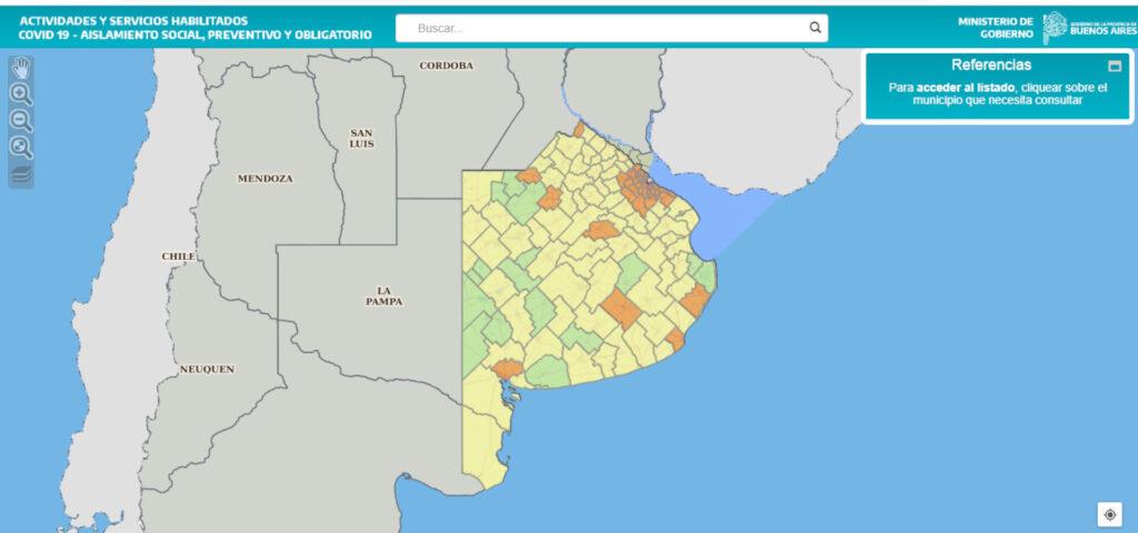 La provincia desarrolló un mapa interactivo donde se pueden consultar las actividades y servicios habilitados en cada distrito. El mapa se puede ver en el siguiente LINK