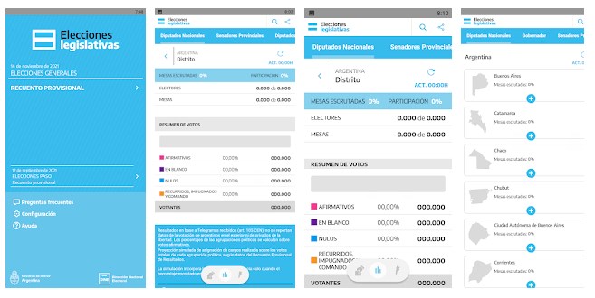«Elecciones Argentina 2021», permite consultar el recuento provisional de los comicios en las categorías de Senadores Nacionales, Diputados Nacionales, Gobernadores, Senadores Provinciales, Diputados Provinciales, Intendentes-Comisionados y Concejales.