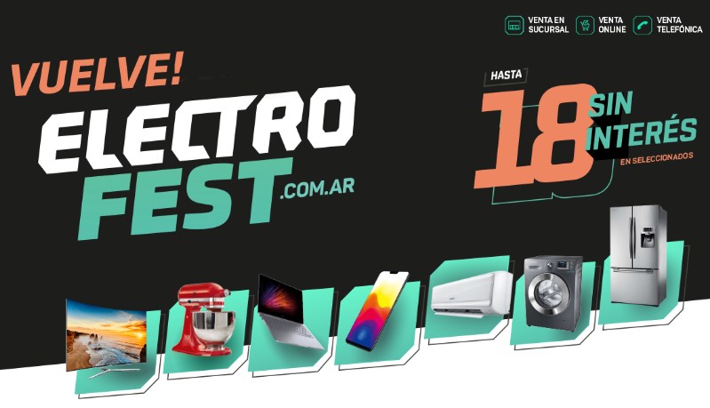 Desde el lunes 30 de agosto y hasta el miércoles 1° de septiembre se realizará una nueva edición de Electro Fest, el evento para la compra de artículos de tecnología y electrodomésticos con descuentos de hasta el 40% y planes de pago de hasta 18 cuotas sin interés que organizan las principales cadenas de retail de la Argentina.
