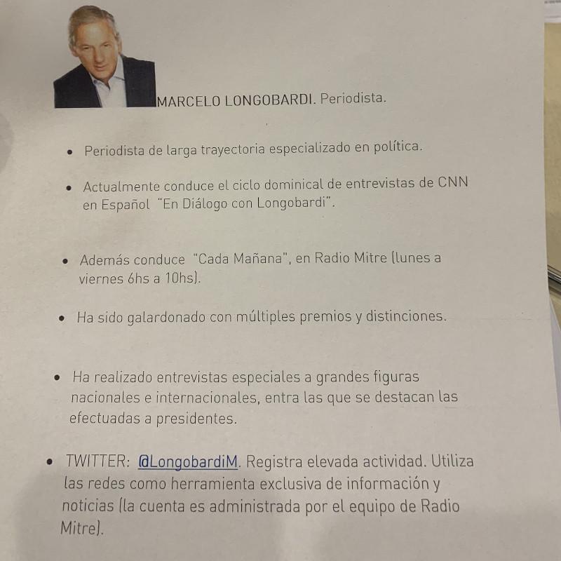 Se detallaba si tenían cercanía a sectores kirchneristas, o si era afines al gobierno macrista como se muestra en la ficha periodista de CNN y Radio Mitre, Marcelo Longobardi, publicada en Perfil.