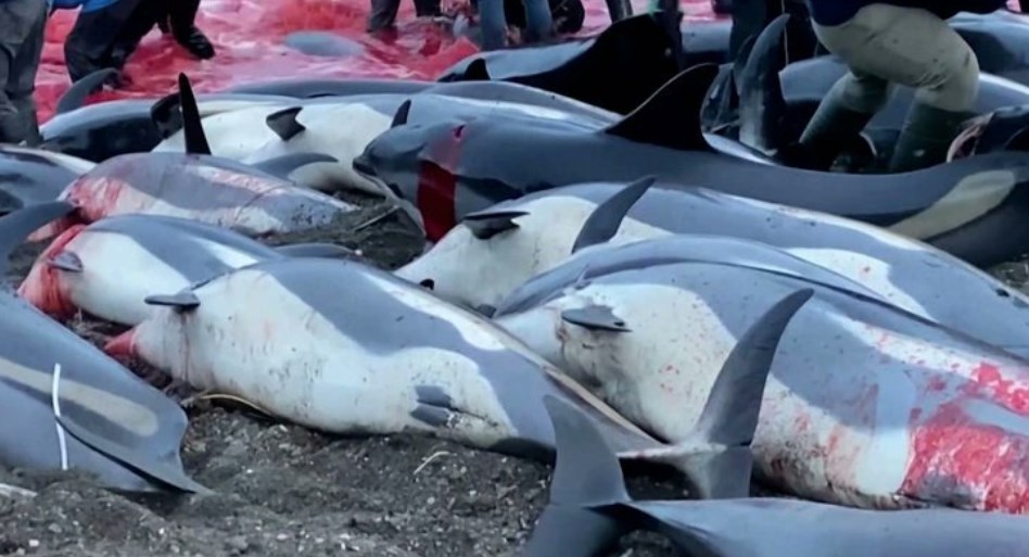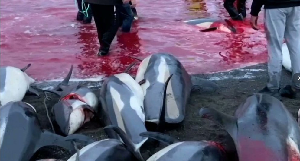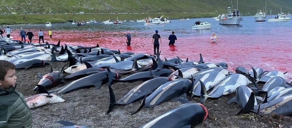 Más de 1.400 delfines fueron asesinados en la costa de las Islas Feroe como parte de una caza tradicional de Grindadrap centenaria. pic.twitter.com/F35MKNPr6J