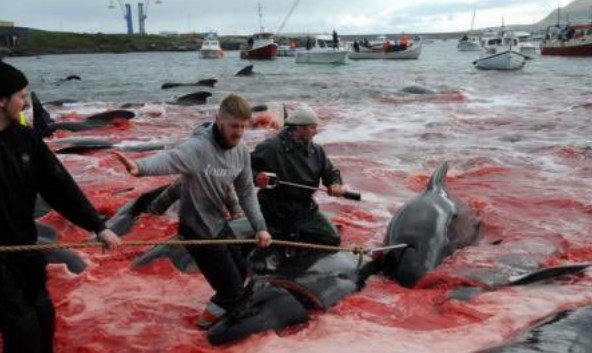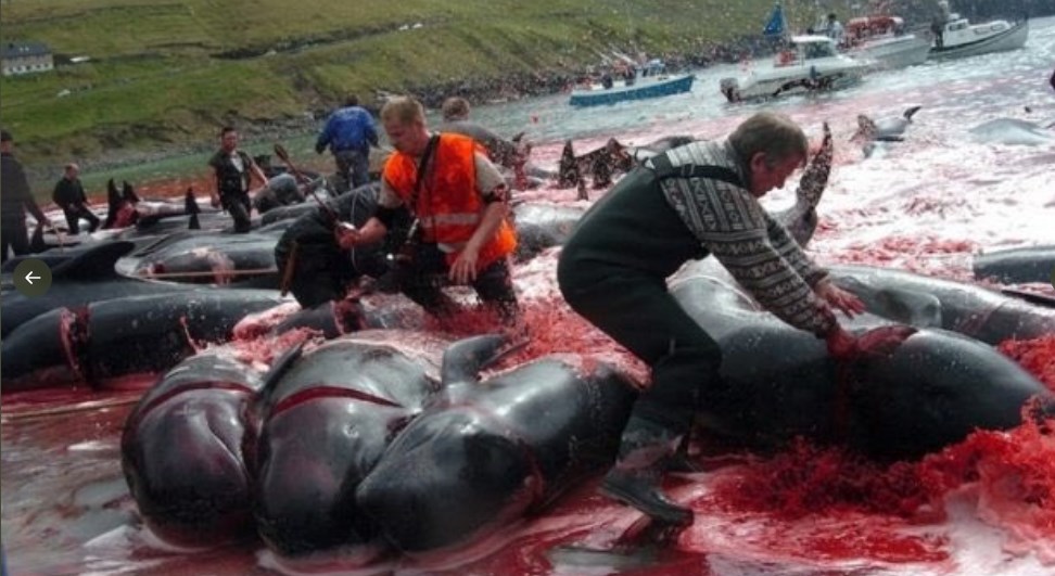 Genera repudio el «grind», antigua tradición que se practica en las islas Feroe, Dinamarca, y que consiste en encerrar con barcos ballenas piloto en una costa de la bahía para luego cazarlas con cuchillos y arpones.