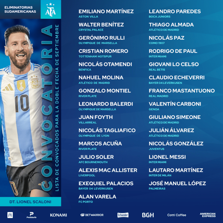 La Selección Argentina vuelve a salir a la cancha. El entrenador Lionel Scaloni anunció la lista final convocados para la doble fecha de Eliminatorias Sudamericanas.