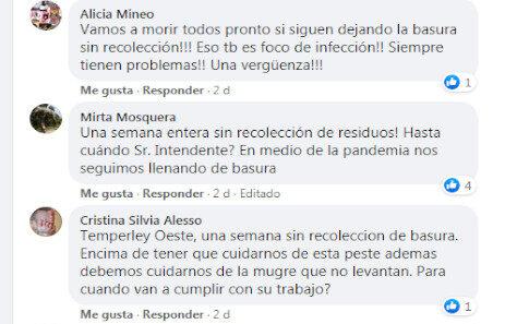 En Facebook y otras redes sociales de la municipalidad los vecinos manifestaron sus reclamos ante una situación que por estos días no parece tener una respuesta positiva.