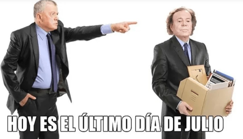 «Julio no se quiere ir», «el último día de Julio» o «Julio se hace largo» son algunas de las frases que acompañan las imágenes trucadas con la cara de Julio Iglesias, en las cuales se ve al cantante español, llorando, despidiéndose desde un avión, o resistiéndose a subir a un auto como metáfora de un mes que aún no llega a su fin.