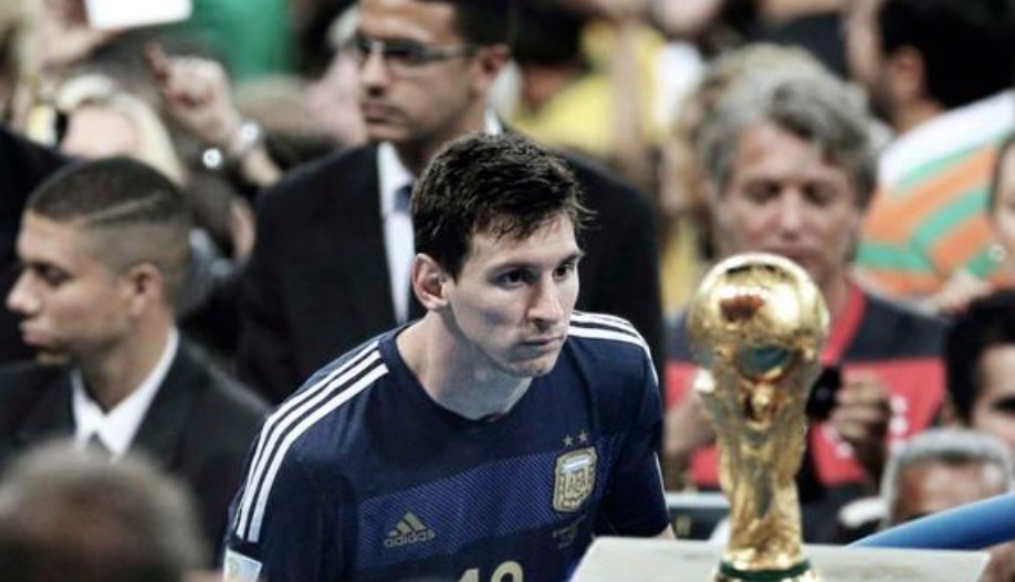 Esa imagen es la contracara de la foto, , tomada por el fotografo Bao Tailiag, de Lio Messi mirando como la copa se le había escapado en la final del Mundial del 2014 cuando la Argentina perdió ante Alemania.