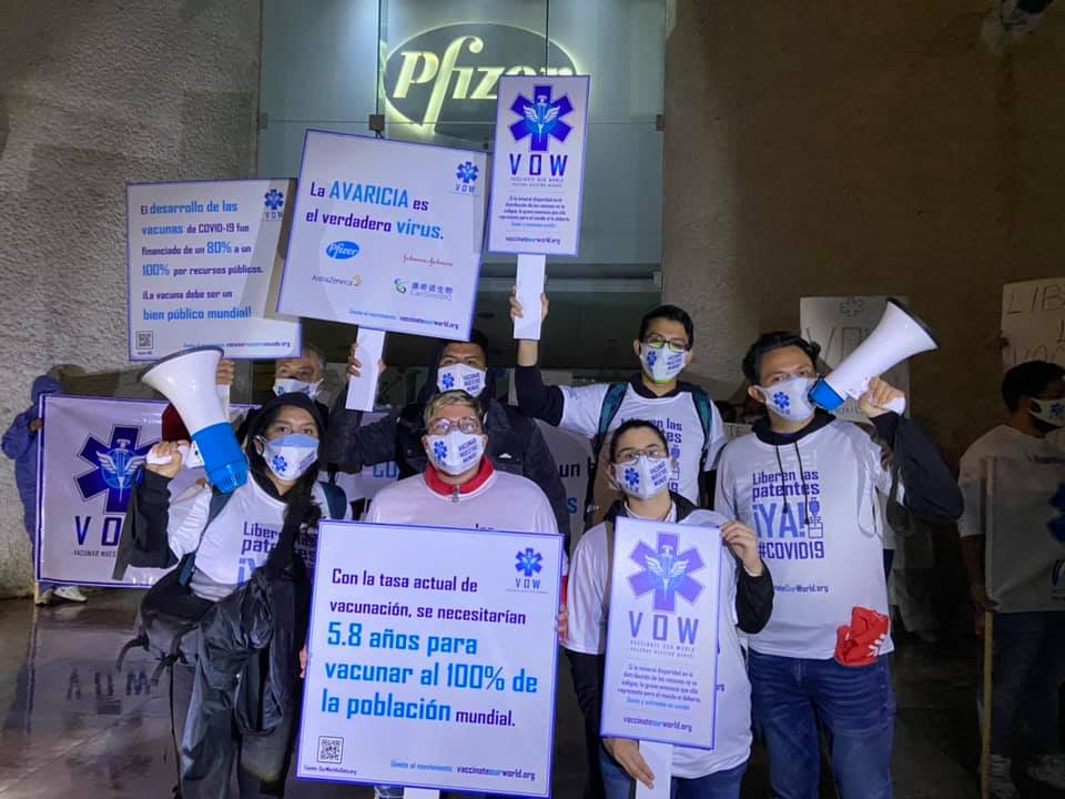 Esta semana la organización Aids Healthcare Foundation (AHF) organizó una protesta pacífica frente a las oficinas de Pfizer en Ciudad de México (CDMX). La actividad es parte de la campaña mundial «Vacunar Nuestro Mundo» (VOW) que exige a las farmaceúticas que liberen las patentes de las vacunas contra el covid-19.