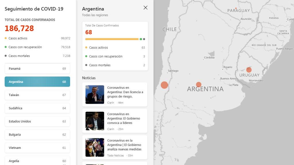 Bing COVID tracker es el nombre del mapa desarrollado por la empresa creada por Bill Gates, y que fue lanzado el domingo 15 de marzo.