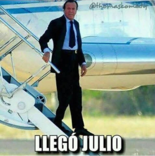 Con fotos del cantante español combinada con frases y distintas imágenes el ingenio popular de Latinoamaérica crea memes para dar la bienvenida a Julio, el mes más frio del invierno en el hemisferio sur y el inicio del verano en el norte.