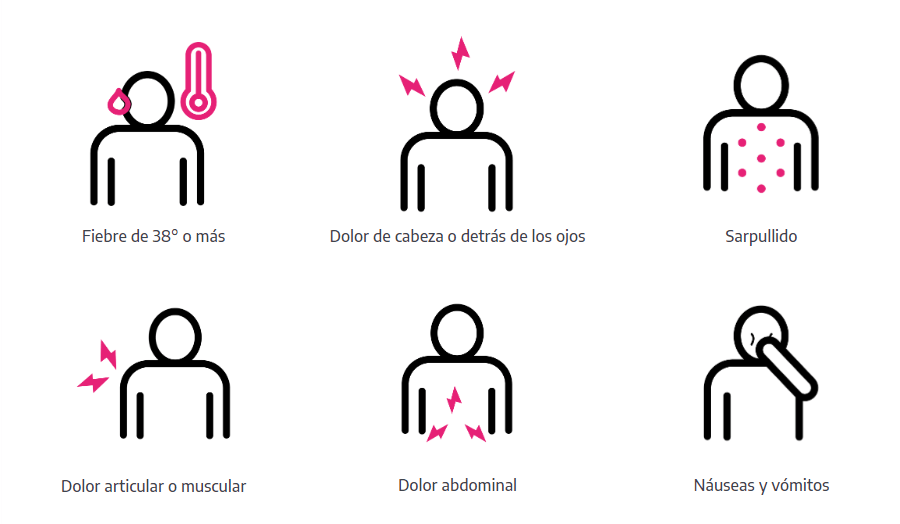 Quienes tengan FIEBRE y alguno de los siguientes síntomas, no deben automedicarse, deben tomar abundante agua y consultar en el centro de salud más cercano.